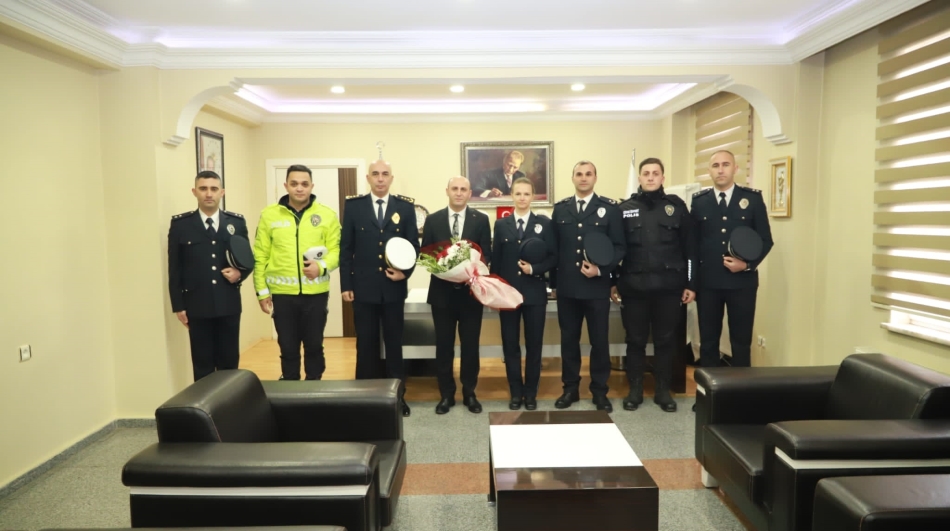 Emniyet Teşkilatının 178. Kuruluş Yıldönümü dolaysıyla İlçe Emniyet Müdürü Şükrü Solak ve Emniyet Teşkilatı tarafından Doğubayazıt İlçe Kaymakamı Murat Ekinci, makamında ziyaret edilerek çiçek takdim edildi.