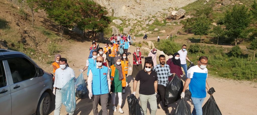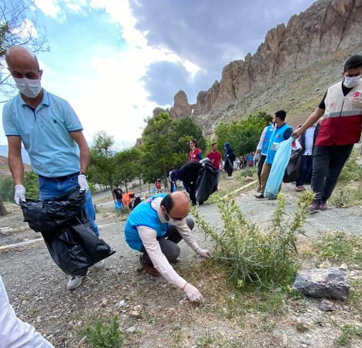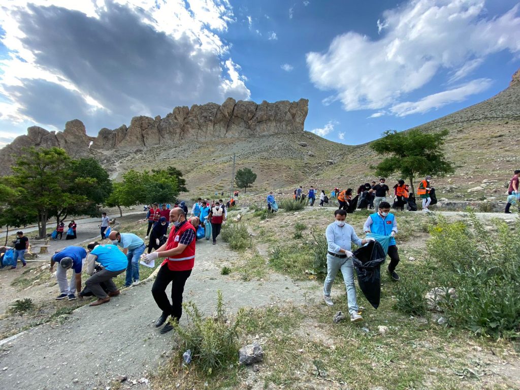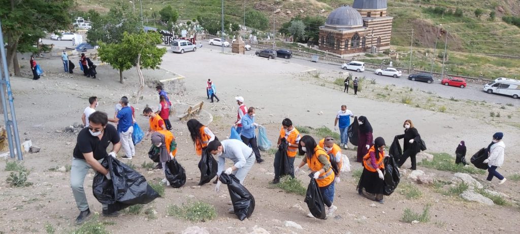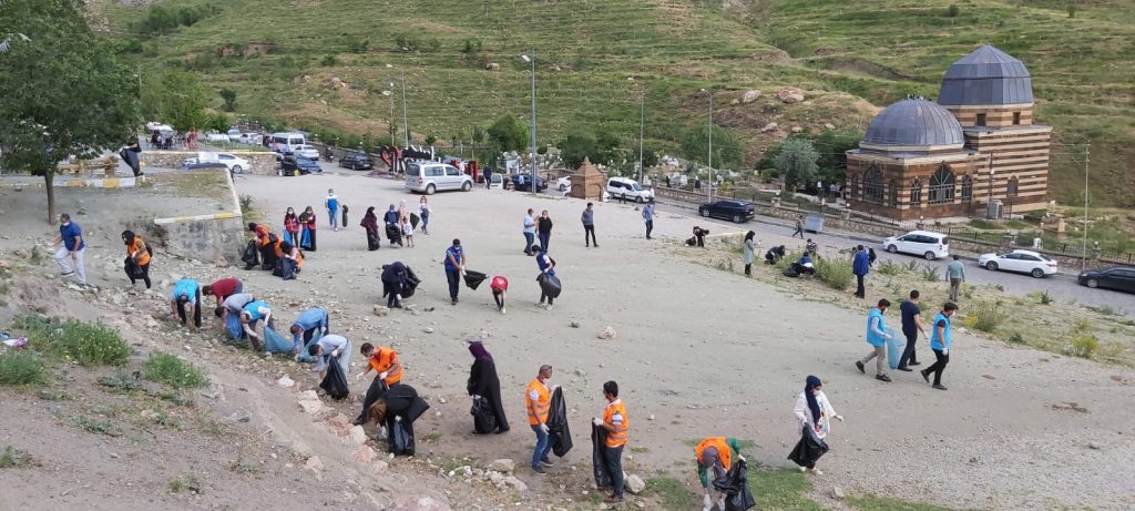 Doğubayazıt’ta gönüllüler topluluğunda oluşan 100 kişilik çevre gönüllüsü ekibi Ahmed-i Hani Türbesinde çevre temizliği yaptı.