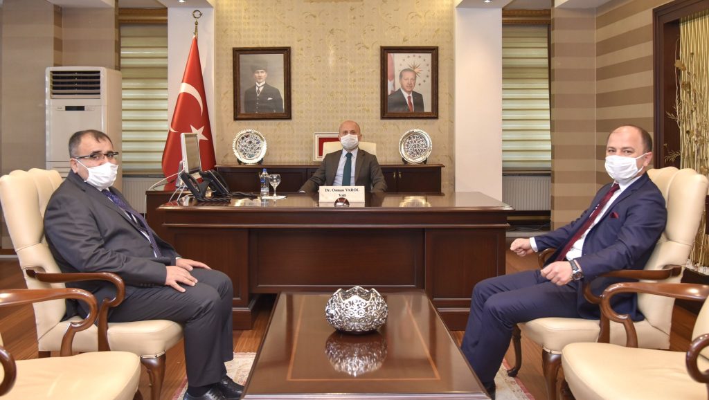 Ağrı Cumhuriyet Başsavcısı Hasan Turgut ve Ağır Ceza Reisi Mehmet Keskin’i makamında kabul eden Vali Dr. Osman Varol hayırlı olsun dilekleri için teşekkür etti.