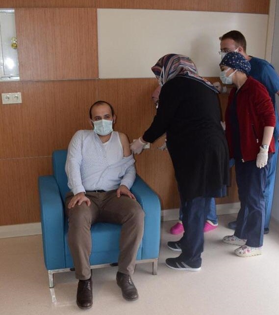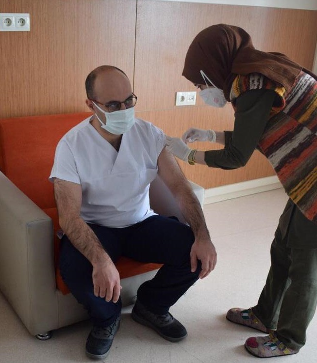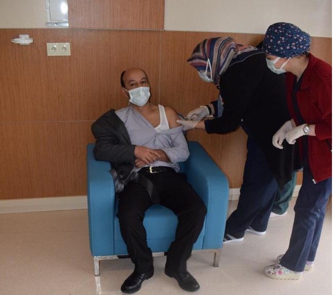 Ağrı İlinde de başlayan aşılama çalışmasında İl Sağlık Müdürü Dr. Öğr. Üyesi Coşkun DAHARLI ilk aşıyı oldu.