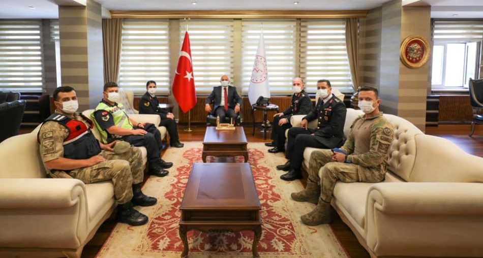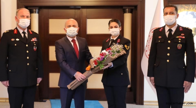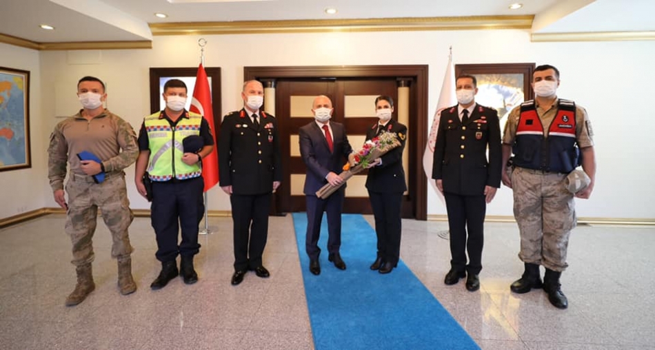 İl Jandarma Komutanı Tuğgeneral Mehmet Çimen ve beraberindekiler Jandarma Teşkilatının 182’nci kuruluş yıl dönümü dolayısıyla Vali Dr. Osman Varol’u Valilik makamında ziyaret ettiler.