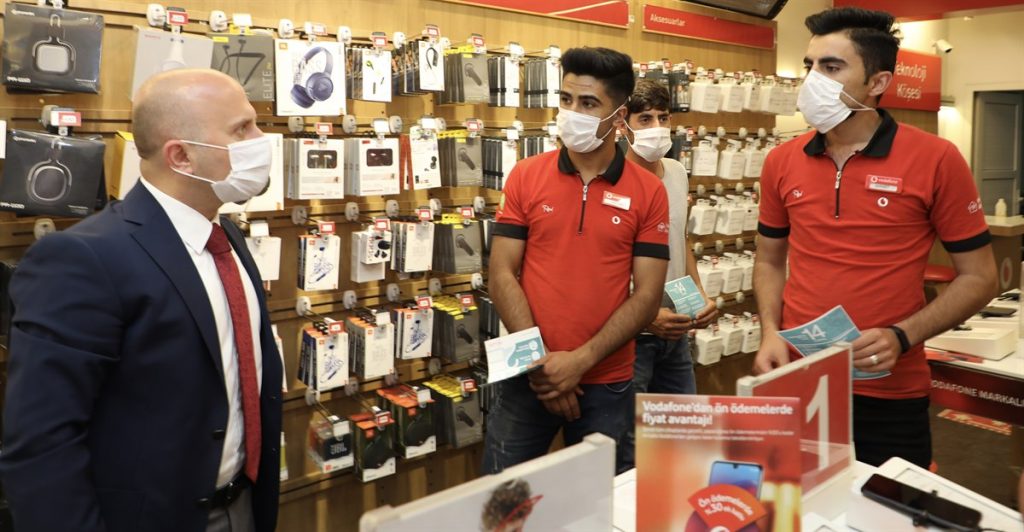 Vali Varol, esnafları ziyaret ederek; esnaflardan ve vatandaşlardan sosyal mesafe, maske ve temizlik kurallarına uymalarını istedi, her işin başı sağlık diyerek temennilerini paylaştı.