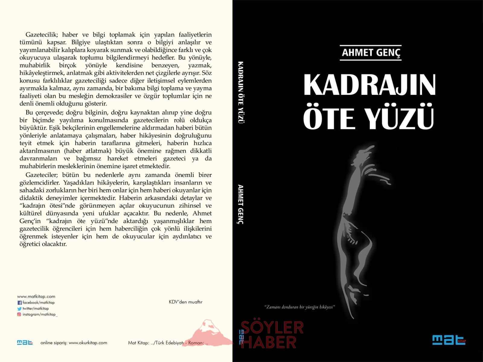 GAZETECİ AHMET GENÇ'İN 20 YILLIK HABER ÖYKÜLERİNİN YER ALDIĞI 'KADRAJIN ÖTE YÜZÜ' ADLI KİTABI YAYINLANDI. 1999-2019 YILLARI ARASINDA YER ALAN VE UNUTULMAYAN HABERLERİN ÖYKÜLERİN YER ALDIĞI KİTAP METAMORFOZ YAYIN GRUBU MARKA YAYIN KONSEPTLERİNDEN MAT KİTAP'TAN YAYINLANDI. (İHA/İSTANBUL-İHA)Gazeteci Ahmet Genç'in 20 yıllık haber öykülerinin yer aldığı 'Kadrajın Öte Yüzü' adlı kitabı yayınlandı. 1999-2019 yılları arasında yer alan ve unutulmayan haberlerin öykülerin yer aldığı kitap Metamorfoz Yayın Grubu marka yayın konseptlerinden Mat Kitap'tan yayınlandı.[/caption]