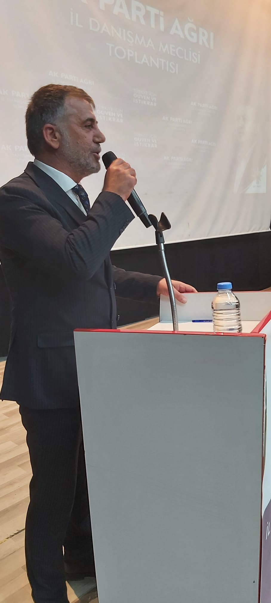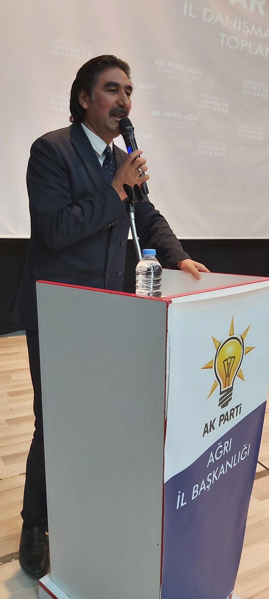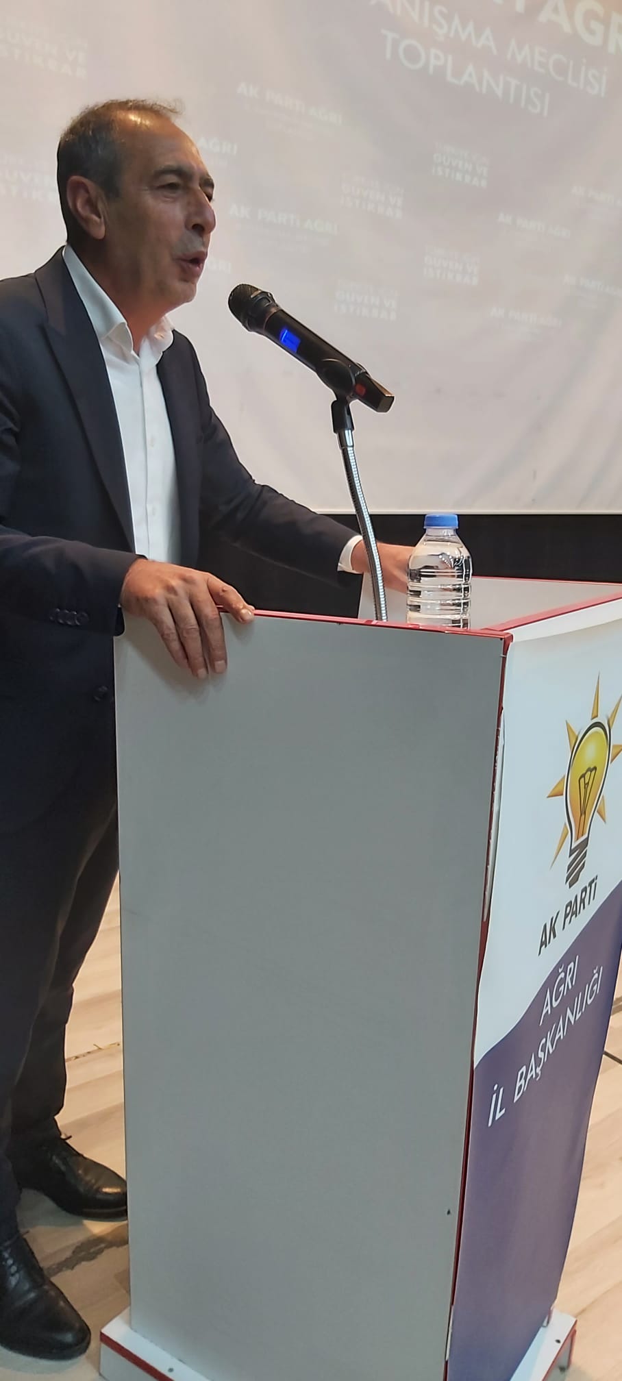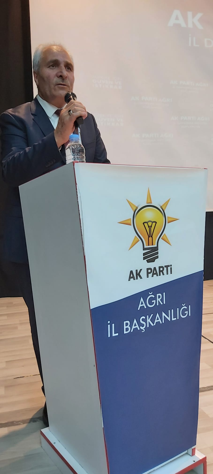 “Bugüne kadar AK Parti hükümeti olarak Ağrı’ya Tarım, Ulaşım, Eğitim, Kültür, Sağlık, Konut ve diğer alanlarda yaptığımız yatırımın Bedeli 43 milyarı geçmiştir. Bu devasa yatırımların Ağrı’ya kazandırılmasında himayelerini esirgemeyen Cumhurbaşkanımız Sayın Recep Tayyip Erdoğan'a bakanlarımıza geçmiş dönem görev yapan tüm milletvekillerimize il Başkanlarımıza Belediye Başkanlarımıza ve tüm yol arkadaşlarıma teşekkür ediyorum. AK Parti var olduğu sürece İnşallah Ağrı’mıza her alanda değer katan yatırımları hayata geçirmeye devam edeceğiz. Şunu çok iyi biliyoruz ki bizim için her zaman asolan olan davamızdır. Bizim anlayışımıza göre bu teşkilata hizmet eden mahalle temsilcimiz Belediye Başkanımız İl ve İlçe Başkanımızın arasında hiçbir fark yoktur. İsimlerimiz ve unvanlarımız bu davaya asla Şeref katmaz, ancak bizler bu davaya katılarak şeref kazanırız. Unutmayalım ki bu davada her makam bir emanet, her görev bir imtihandır. AK Parti'de makamlar koltuklar ve unvanlar hep değişir ancak bir tek şey değişmez o da vefa duygusudur. Vefa AK Parti'nin Önsözüdür. Vefa demek sadakatli olmak demektir. Vefa demek gayretli olmak demektir. Vefa demek ben değil biz olmak demektir. Bizler bu kadim teşkilatın mensupları olarak gönül kırmakla değil gönül kazanmakla mükellefiz. Birbirinizi davanızın hatırına hoş görün ve birbirinizi Allah için sevin. Kardeşlik ben değil biz diyebilmektir. Özünde vefa olmayan hiçbir hareket başarılı olması ve milletimize fayda sağlaması mümkün değildir. Türkiye içinde hayali olan iddiası olan ve hedefleri olan bu uğurda tüm dünyayı karşısına alabilen Cumhurbaşkanımızın arkasında daha güçlü daha dirayetli durmalıyız. Önümüzde yeni zaferleri imza atacağımız yerel seçim sürecimiz bizi bekliyor. İnşallah bu süreçte çok daha fazla kenetlenerek çok daha fazla bütünleşerek AK Partimizi 2053 ve 2071 hedeflerine güçlü ve inançlı kadrolarla taşıyacağız. Yerel seçimler partimizin Ağrı'da büyük zaferine vesile olacaktır”. dedi