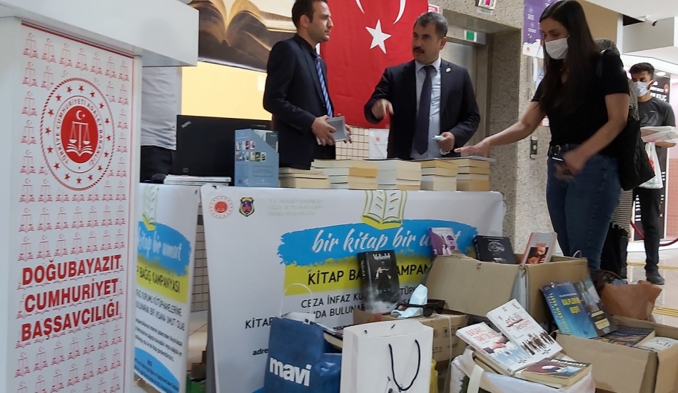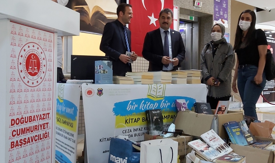 T.C. Adalet Bakanlığının başlattığı ve Doğubayazıt’ta Cumhuriyet Başsavcılığı tarafından organize edilen “Bir Kitap Bir Umut” Türkiye geneli Kapalı ve Açık Ceza İnfaz Kurumlarında yatan mahkumlar için yapılan kitap kampanyasına, Doğubayazıt AK Parti İlçe Teşkilatı Başkanı Av. Mustafa Konyar ve Yönetim kurulu üyeleri kitap kampanyasına duyarsız kalmayarak, kendi aralarında topladıkları 340 kitap ile kampanyaya destek oldular.