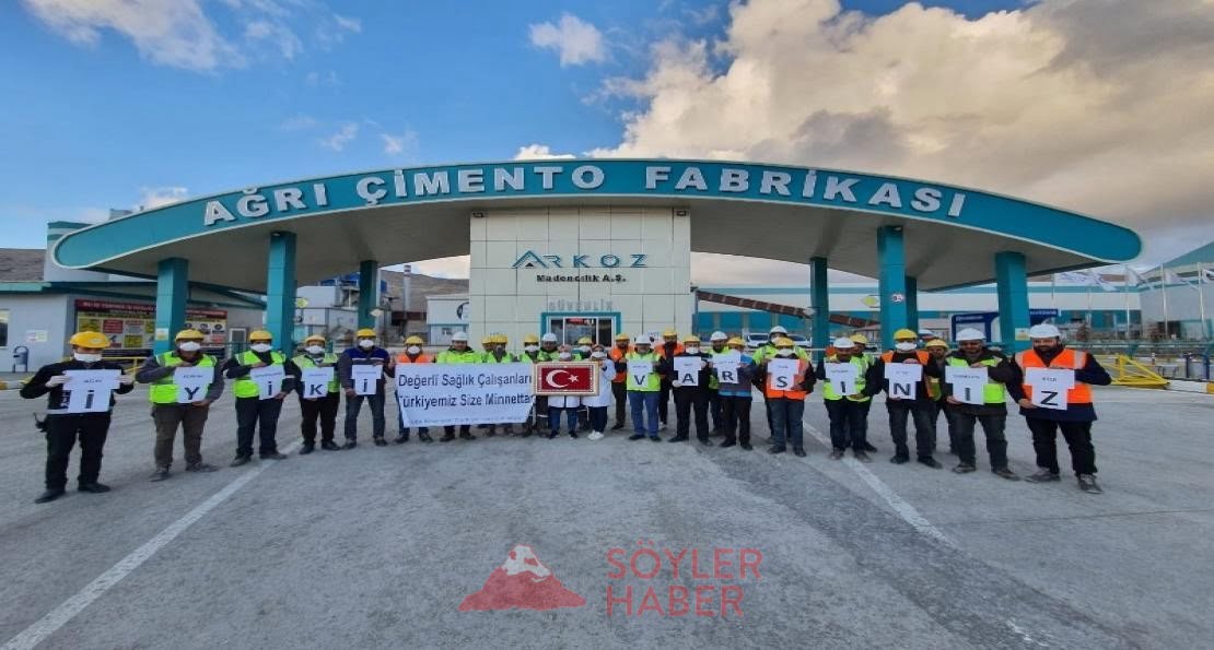 Ağrı Çimento Fabrikası çalışanları koronavirüse karşı özveri ile çalışan sağlık görevlilerine destek olmak için etkinlikler düzenledi.