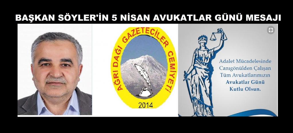 Ağrı Dağı Gazeteciler Cemiyeti, Söyler Haber sitesi olarak bu vesile ile tüm Avukatlarımızın 5 Nisan Avukatlar Günü'nü kutluyor, selam ve saygılar sunuyorum.
