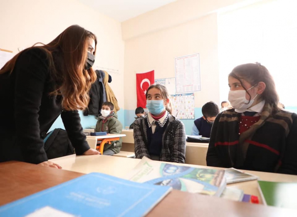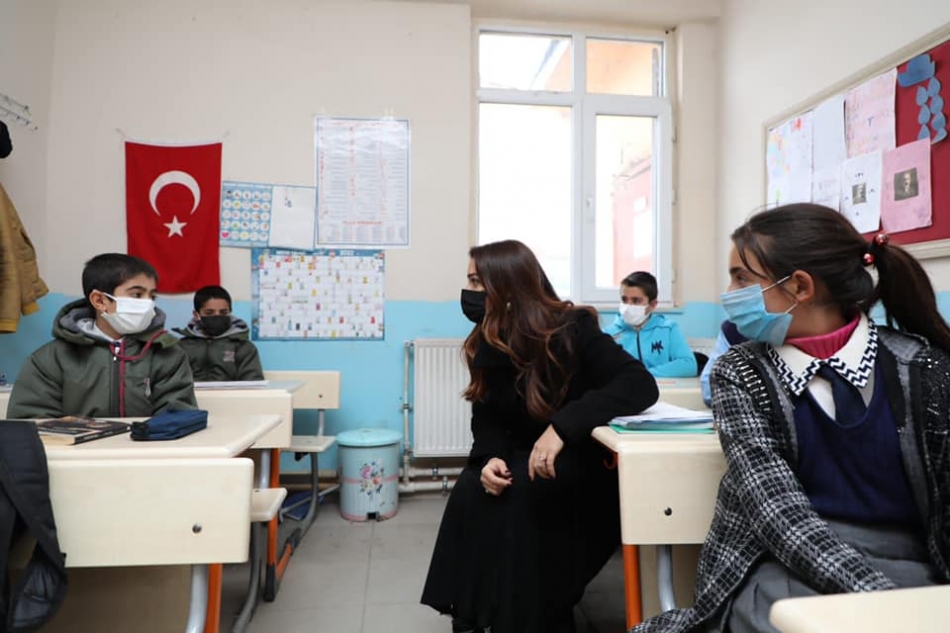 Ağrı Valisi Dr. Osman Varol'un Eşi Funda Varol, Doğubayazıt İlçe Kaymakamı Mehmet Kemal Akpınar'ın eşi Tuğçe Tekeşin Akpınar ile birlikte, Doğubayazıt Tanıktepe İlk ve Ortaokulunu ziyaret ederek öğrencilerle bir araya gelip hediyeler verdiler.