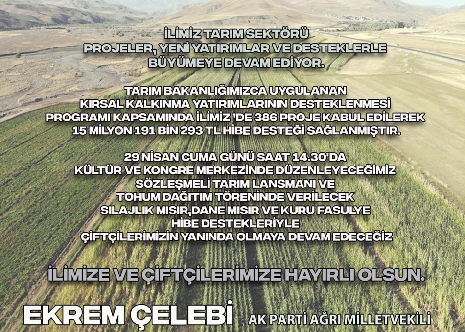 ÇELEBİ'DEN MÜJDE "TARIMDA 15 MİLYON HİBE DESTEĞİ"