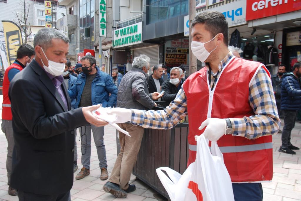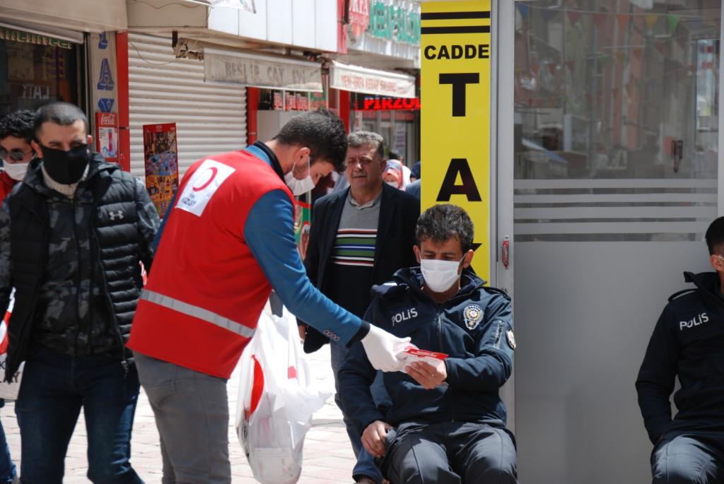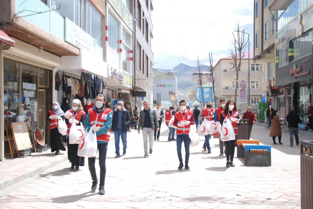 Doğubayazıt çarşı merkezinde 1500 Adet dezenfektan, Maske, Hijyen Seti gönüllü Kızılay elamanları tarafından dağıtım yapılmıştır.