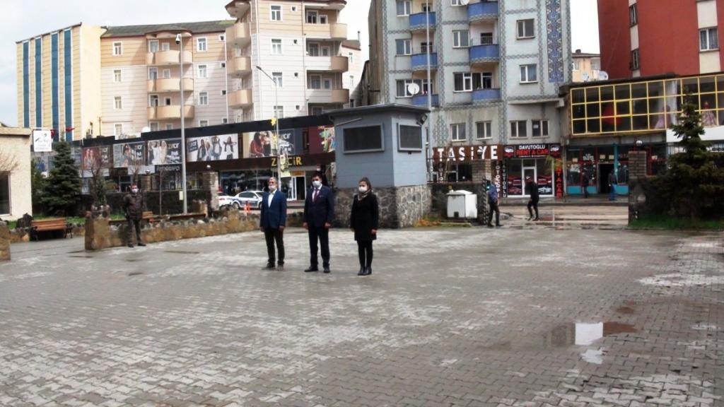 Korona Virüs COVİD 19 salgın hastalık nedeniyle ülke genelinde törenlerin buruk geçtiği 23 Nisan Ulusal Egemenlik ve Çocuk Bayramı Doğubayazıt İlçesinde Atatürk anıtına İlçe Milli Eğitim Müdürü İhsan