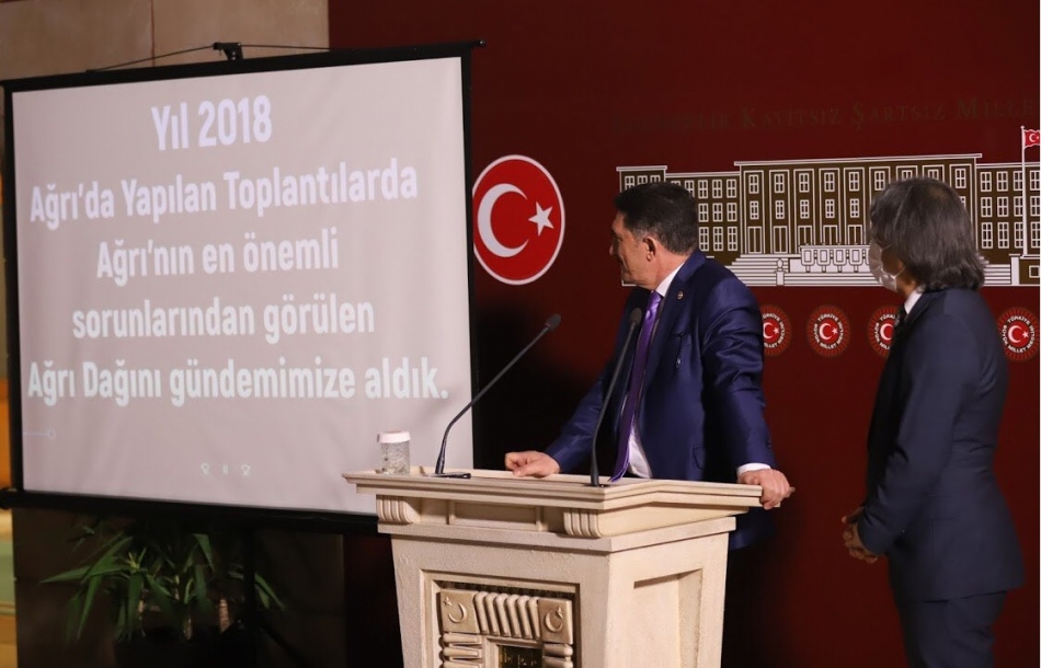 TBMM’de Dağcılık Federasyonu Başkanı ile birlikte, Ağrı ilinin kış turizmi tanıtımına katkı sağlayacak Ağrı Dağı’nın tırmanışa açılmasına yönelik basın toplantısı gerçekleştirildi.