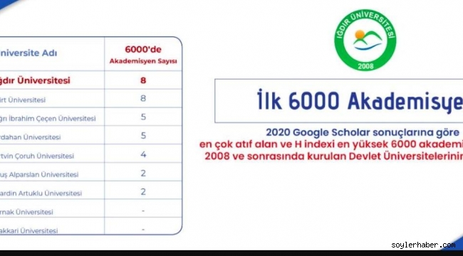 Ayrıca yapılan araştırma kapsamında 2008 yılı sonrası kurulan devlet üniversiteleri arasında Iğdır Üniversitesi 1. sırada yer aldı.
