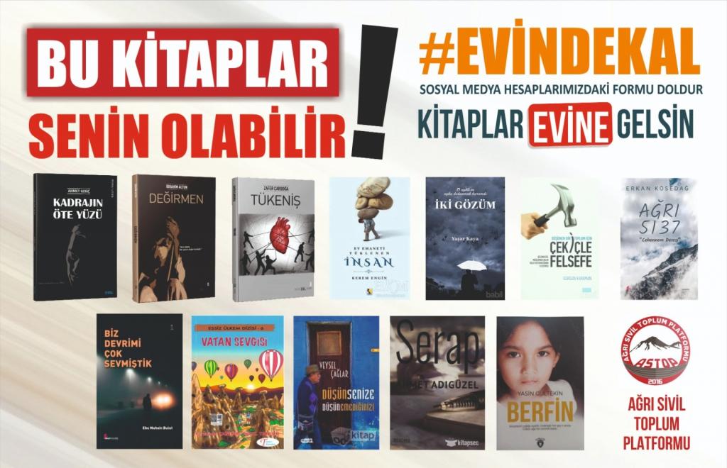 Ağrı Sivil Toplum Platformu, Covid-19 Pandemisi dolayısı ile evinde kalan kitap okuyucuları için Ağrılı yazarlardan oluşan kitapları, evlere ücretsiz olarak ulaştıracak. Evde Kal, Kitabın Ağrılı Yazarlardan Olsun isimli kampanyanın duyurusunu yapan Ağrı Sivil Toplum Platformu Başkanı Mehmet Salih Aydın, kampanya ile üç önemli hedefi ortaya koyduk diyerek " Biz insanlarımızın kitap okuma alışkanlığını kazanmasını, okurken Ağrılı yazarlarımızı tanımasını ve evde kaldıkları süre içerisinde onlara zaman geçirebilmeleri için toplumsal dayanışmayı hedefledik" dedi.
