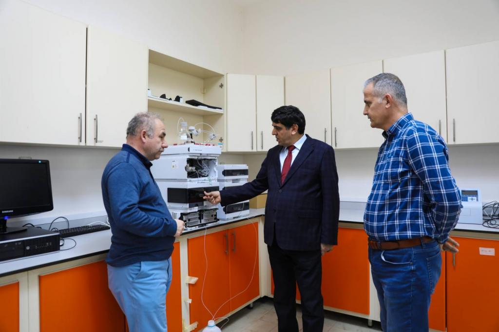 laboratuvarları gezdi. Rektör Alma, gıda ve mikrobiyoloji laboratuvarlarında çalışma yapan ilgililere