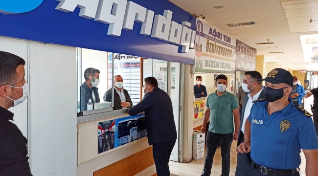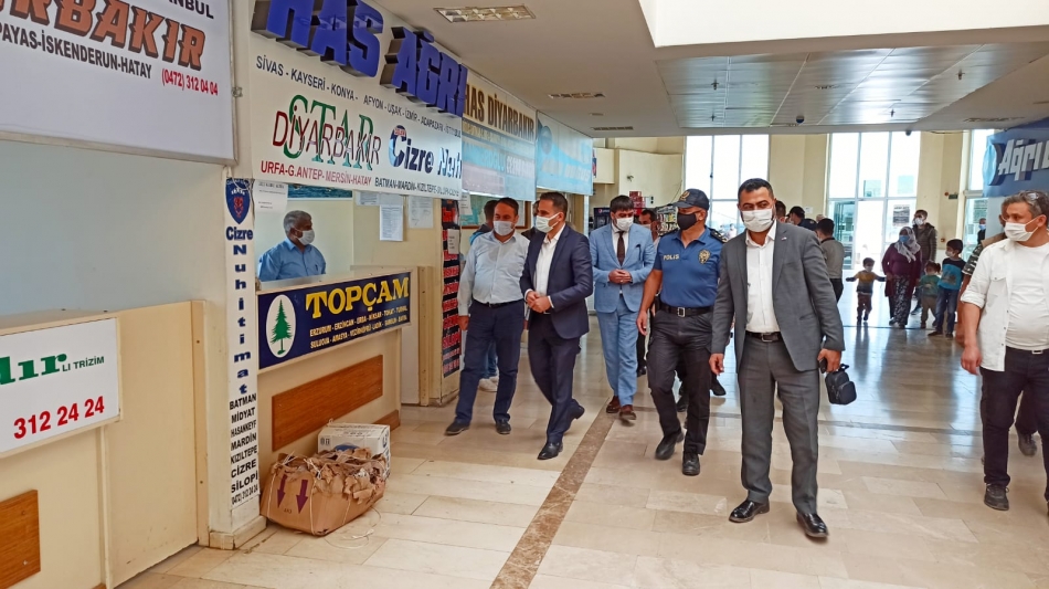 Doğubayazıt İlçe Kaymakamı Mehmet Kemal Akpınar, İlçe Sağlık Müdürü Turan Saydam, İlçe Milli Eğitim Müdürü İhsan Kösen ve beraberindeki heyet ile Koronavirüs (COVİD-19) denetim ekipleriyle beraber Doğubayazıt Otogarında gerçekleştirilen “maske, sosyal mesafe ve hijyen” denetimlerine katıldılar.