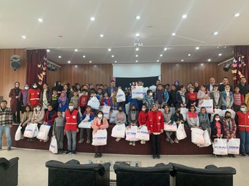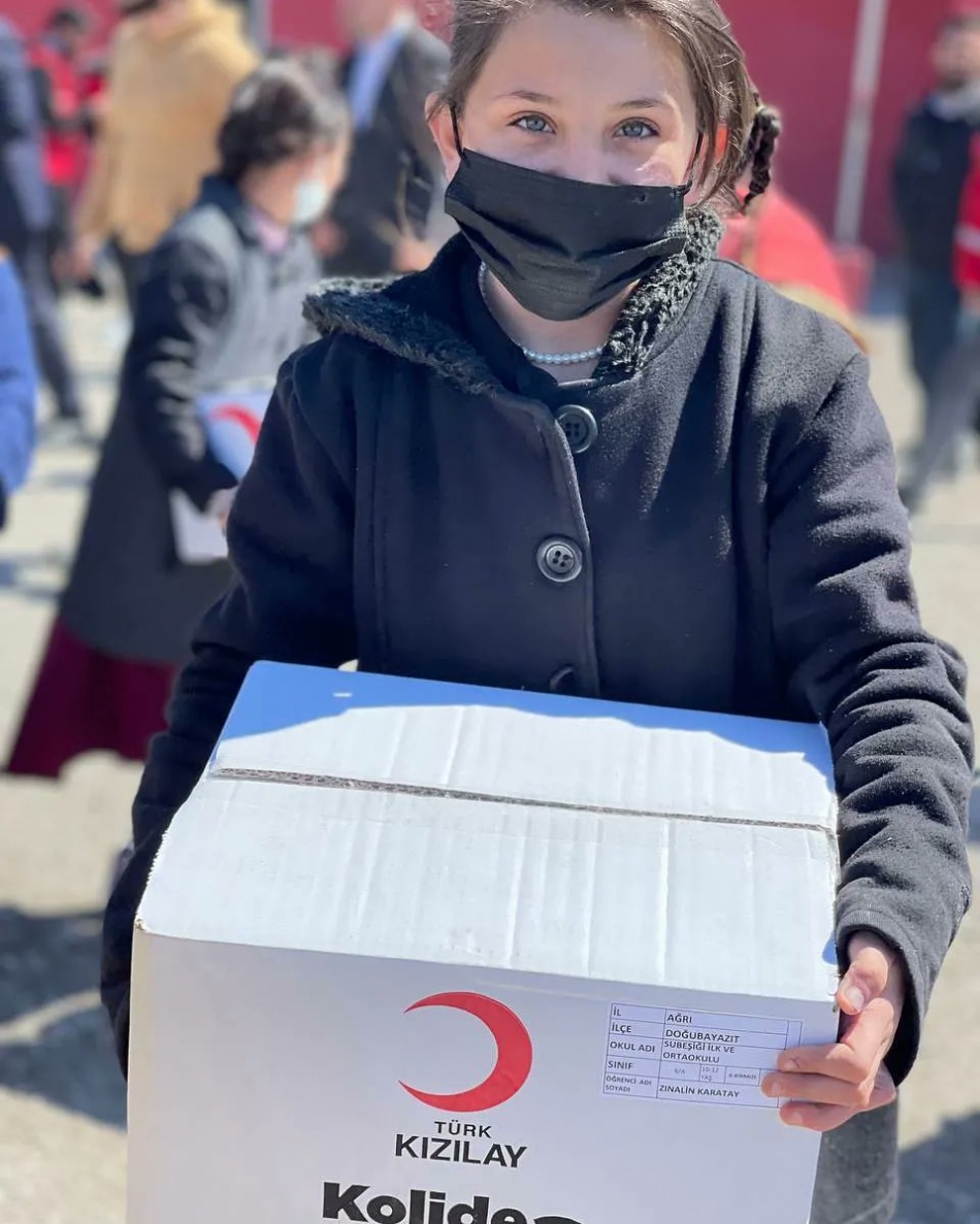 Doğubayazıt ilçe Kaymakamı Mehmet Kemal Akpınar ve Cumhuriyet Başsavcısı Bahri Yalçınöz, Kızılay Gönüllüleri ile birlikte Kemal Paşa İlkokulu'nda eğitim gören ihtiyaç sahibi öğrencilere ihtiyaç duydukları çeşitli kıyafet dağıtımına da katıldılar.