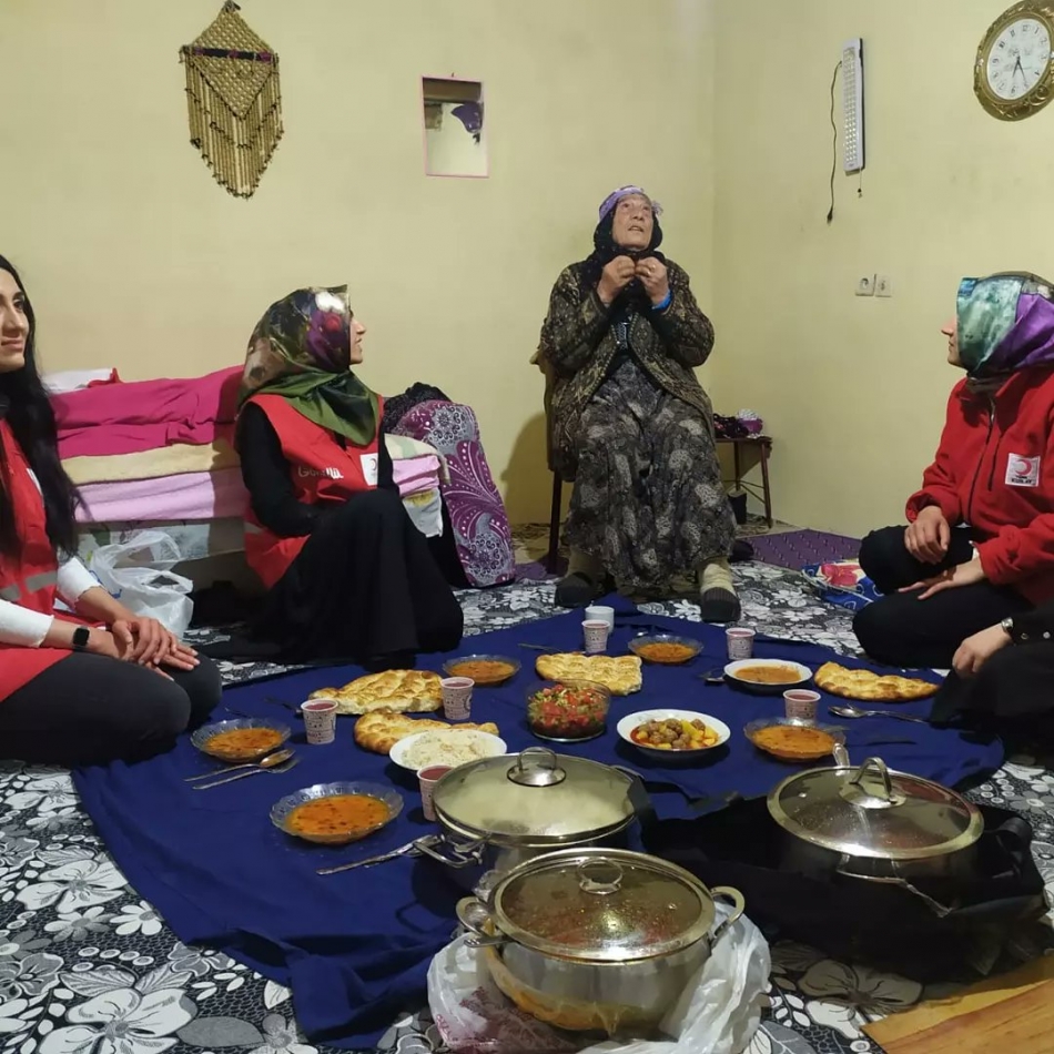 Doğubayazıt Kızılay Şube Müdürü Kemal Şahin ve Kızılay gönüllüleri kendi evlerinde yaptıkları yemeklerini alarak, Doğubayazıt Kızılay’ı tarafından tespit edilen 110 kimsesiz ve yaşlı ihtiyaç sahibi ailelerin evlerine gidip sofralarına oturarak beraber iftar açmaktalar.