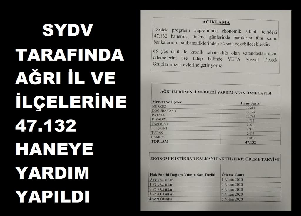 KORONAVİRÜS NEDENİYLE SYDV TARAFINDAN AĞRI'DA 47.132
