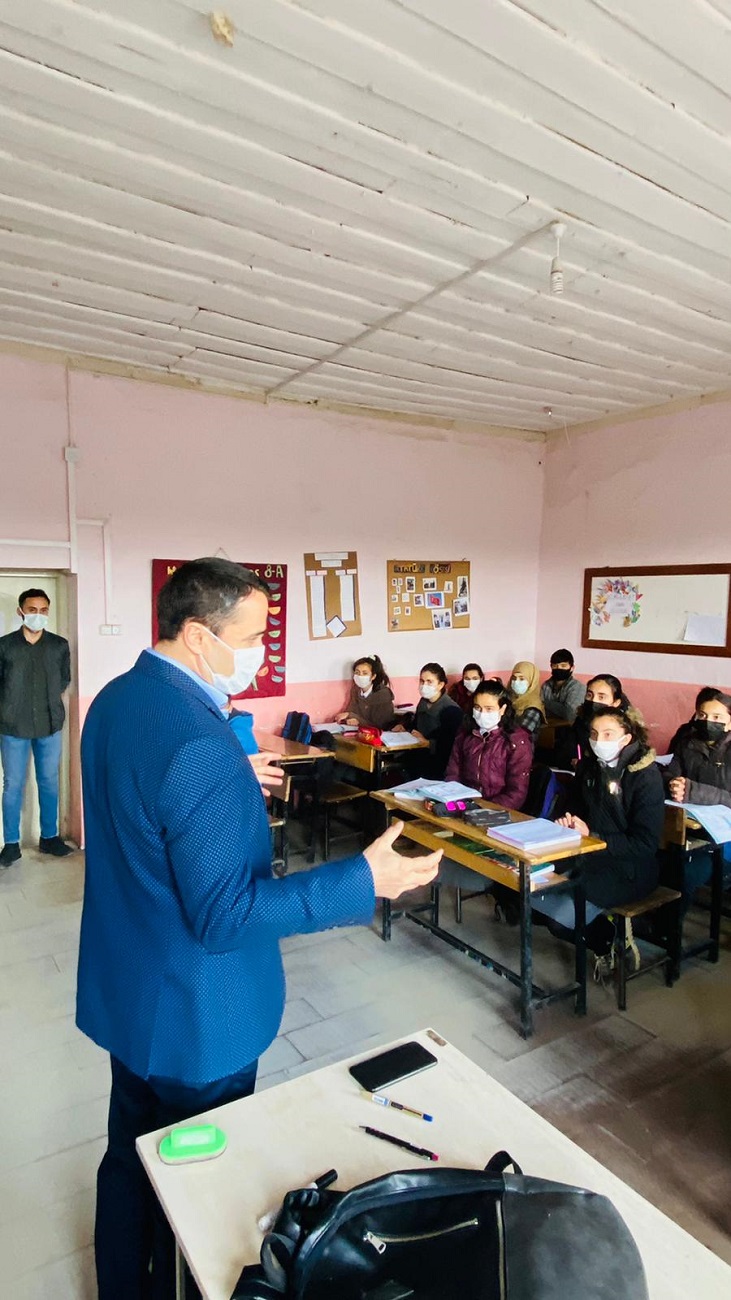 Başkan Konyar öğrenciler ile yaptığı sohbetinde kendisinin de 10 çocuklu bir ailenin evladı olduğunu, kendisinin de bir köyde dünya geldiğini ve köy okulunda okuduğunu okula giderken, bir elimizde kitaplarımız bir elimizde tezek ile okula gittiği anlatan Konyar, bakın ben okudum avukat oldum sizlerde çok çalışın okuyun devletinize, milletinize ve ailenize hayırlı birer insan olunuz.