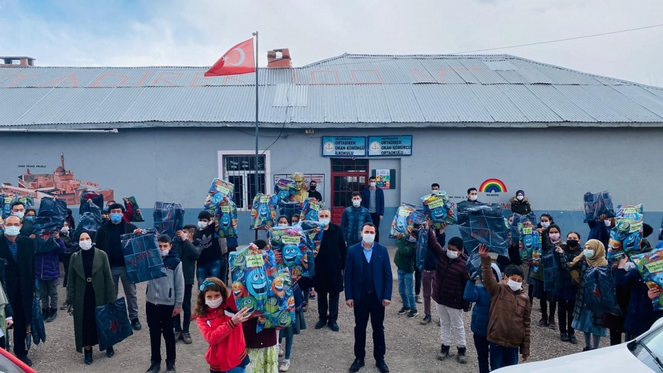 Köy okulunda okuyan 85 öğrenciye ayrıca kırtasiye malzemesi, okula bir koli kitap ve 8. sınıflar için test kitapları desteğinde bulunarak çocukların ihtiyaçları giderilmiştir.