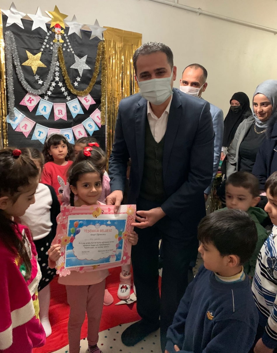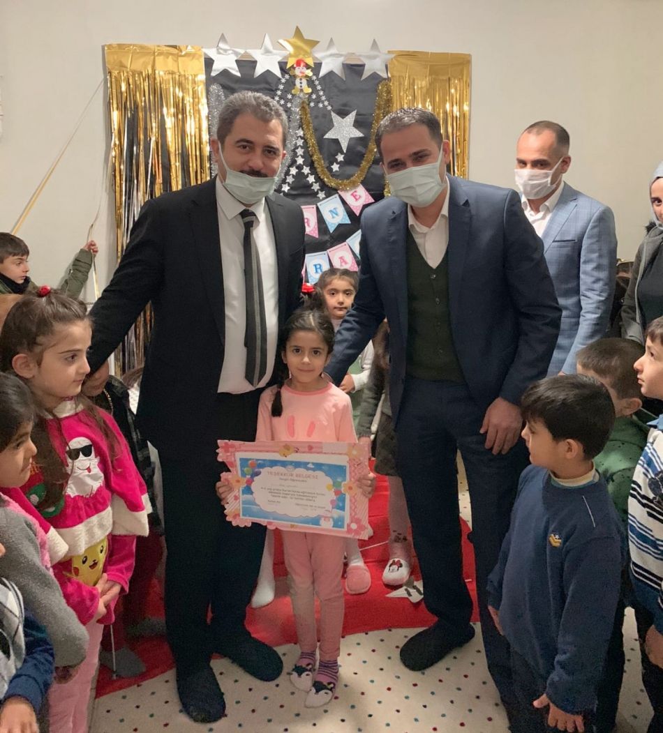 Doğubayazıt ilçe Kaymakamı Mehmet Kemal Akpınar ve Cumhuriyet Başsavcısı Bahri Yalçınöz, Doğubayazıt ilçesindeki Aile Destek Merkezlerinde (ADEM) eğitim gören ve bugün karne alarak yarıyıl tatiline giren miniklerin karne sevincine de ortak oldu.
