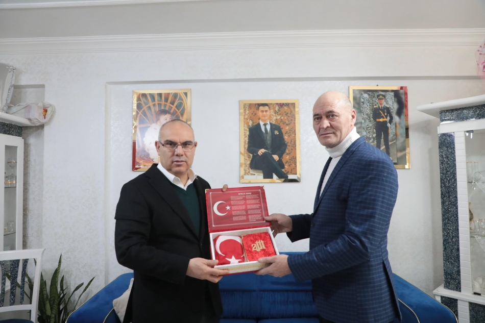 Ağrı Valisi Mustafa Koç, Şehit Piyade Teğmen Harun Aslan’ın ailesine, Türk Bayrağı ve Kur’an-ı Kerim hediye etti.
