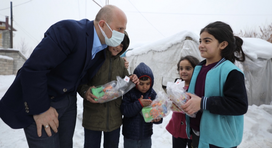 çocukların isteklerini dinleyerek onlara çeşitli hediyeler verdi.