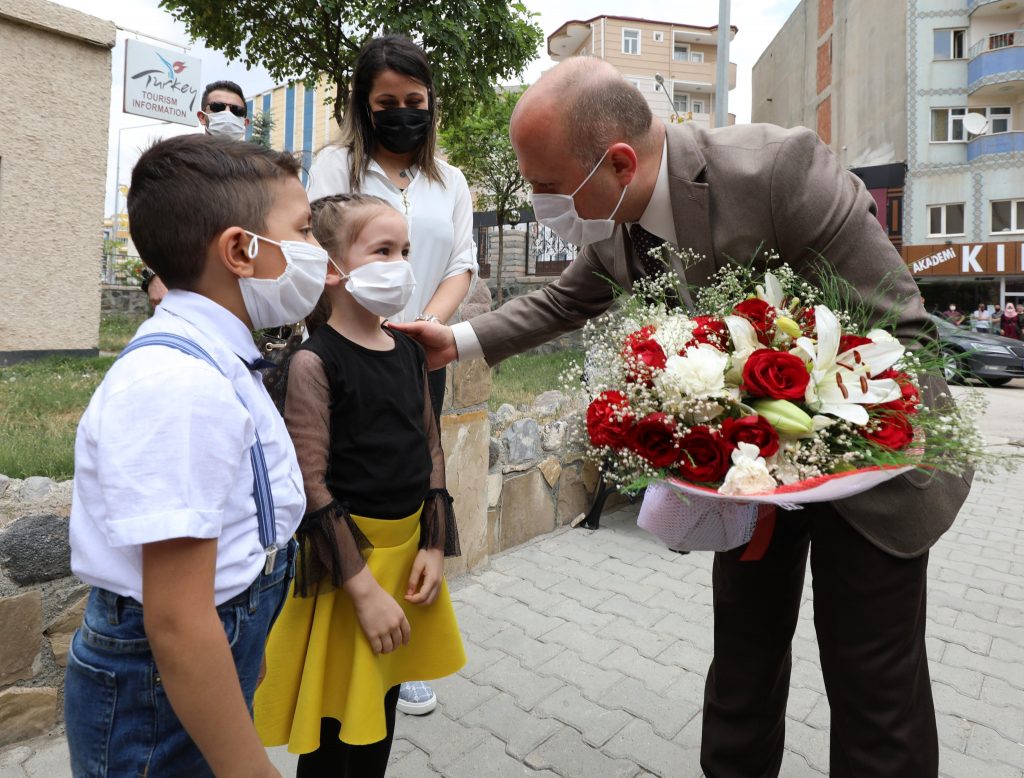 Ağrı Valisi Dr. Osman Varol Doğubayazıt Kaymakamı Zafer Engin, ilçe protokol üyeleri ve çocuklar tarafından çiçeklerle karşılandı.